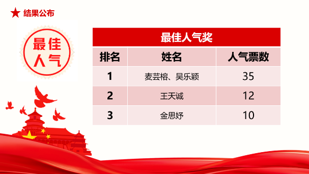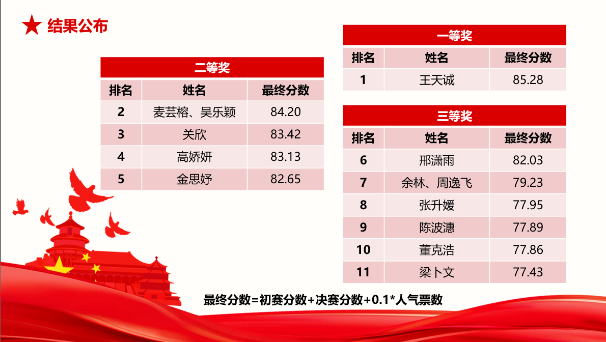 决赛包括三部分,经过选手们的精彩演绎和激烈角逐后,最终决出一等奖1支队伍、二等奖4支队伍、三等奖6支队伍,并通过现场观众投票决出最佳人气奖3支队伍。