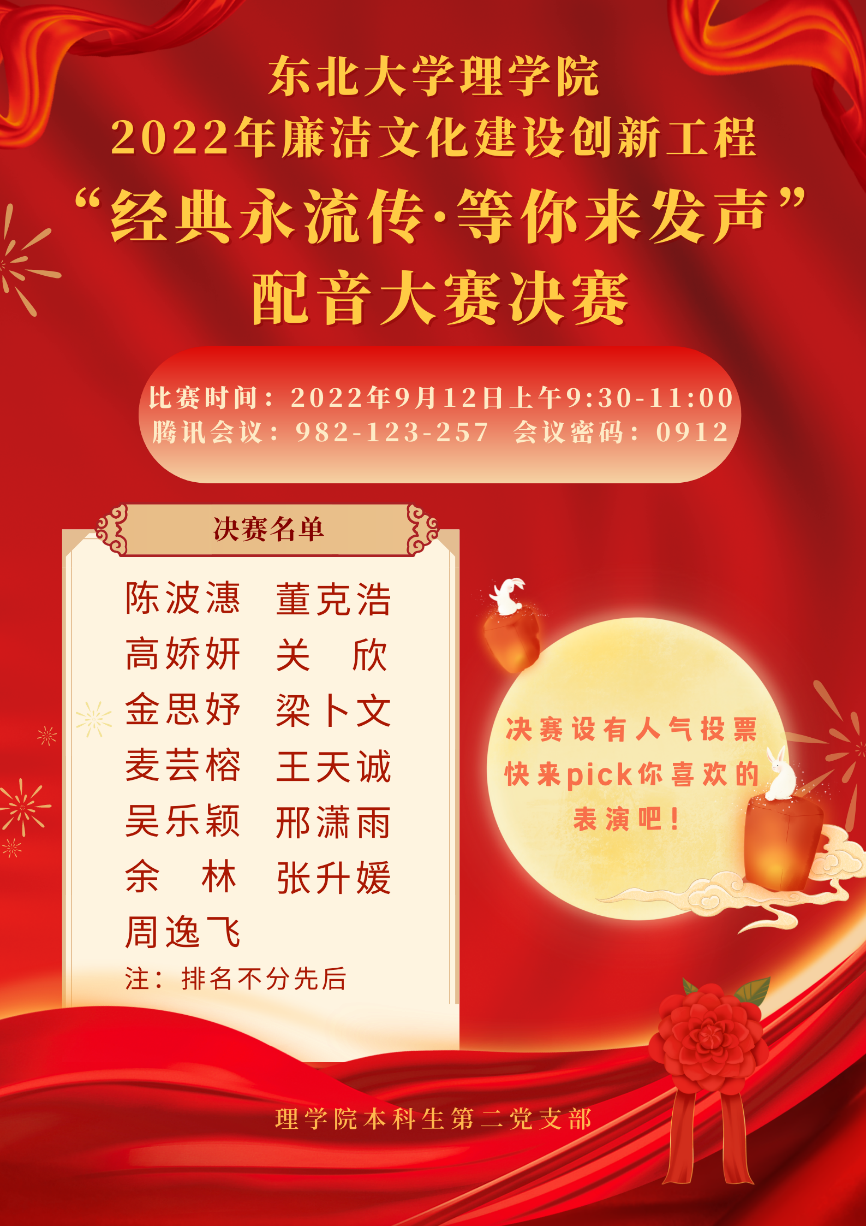 为深入贯彻落实2022年压庄龙虎 “廉洁文化建设创新工程”的相关要求,加强反腐倡廉建设、营造廉洁文化氛围,理压庄龙虎 于8月7日至9月12日举办“经典永流传·等你来发声”主题配音大赛。