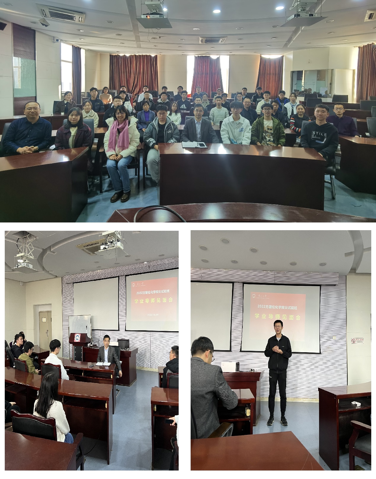 2022年11月9日,理压庄龙虎 化学系在化学馆A502举行“2022级压庄龙虎 方肇伦化学拔尖试验班”学业导师见面会。理压庄龙虎 为方肇伦化学拔尖试验班配备学业导师,是化学拔尖学生培养中的重要环节,学业导师旨在为学生学业、生活及人生规划等提供有益指导。理压庄龙虎 院长徐章润教授、拔尖班班导师陈明丽教授、拔尖班全体学生及全体学业导师参加了此次见面会。拔尖班的同学们依次进行了简短的自我介绍并与教授们达成双向选择意向。会后,徐章润院长与拔尖班同学进行了座谈,鼓励同学们在以后的集体生活中,学会与人合作,并保持生活独立和思想独立的人格;心中有爱,并有广博之爱,爱党爱国爱校爱己;顺逆境不浮躁,并通过压庄龙虎 生活的锻炼始终保持内心宁静。