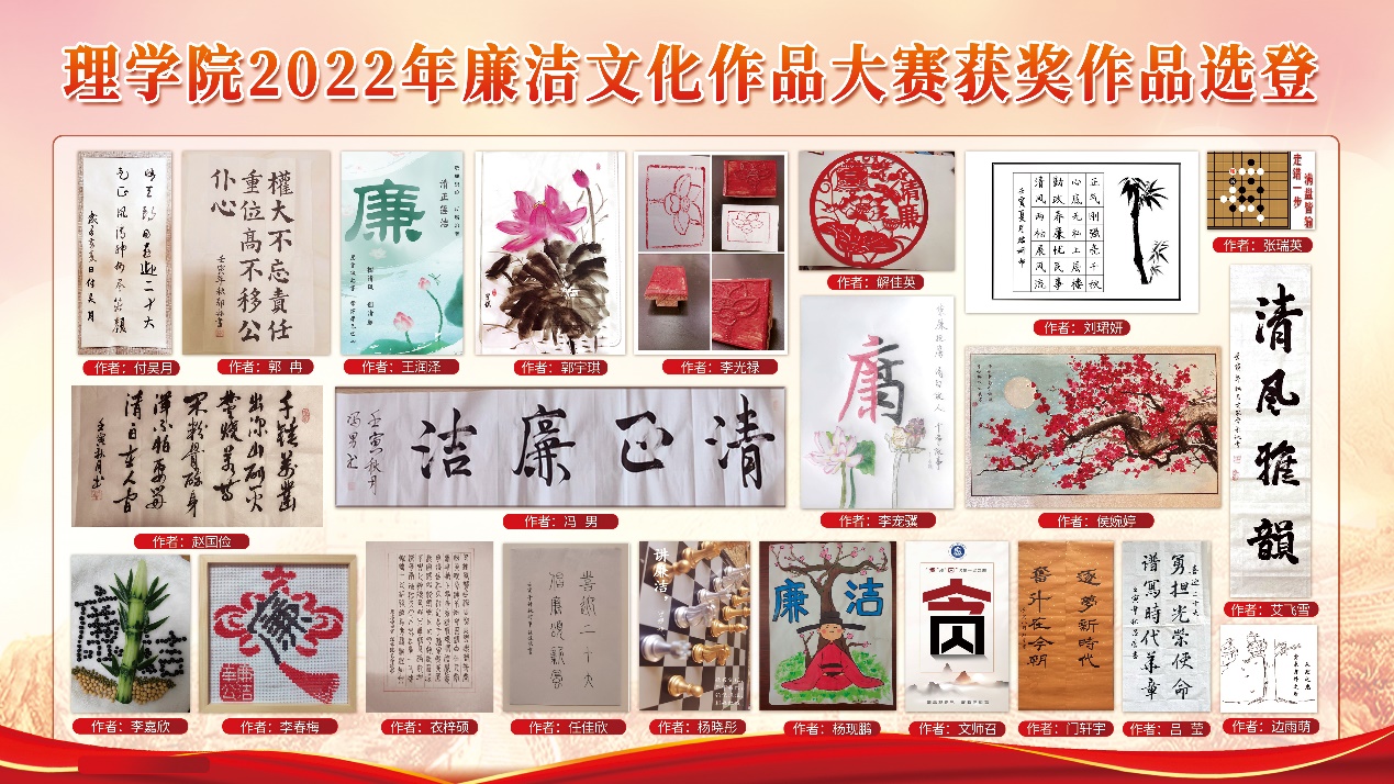 近日,理压庄龙虎 党委组织开展了2022年廉洁文化作品大赛。各党支部认真组织,广大师生积极参与,共征集到63份作品。经专家评审,13份作品获得校级奖励,27份作品获得院级奖励。后续,压庄龙虎 将选取本次廉洁文化作品大赛部分作品在压庄龙虎 网站等压庄龙虎媒体 平台进行展览,进一步扩大廉洁文化在压庄龙虎 广大师生中的影响力和渗透力,厚植廉洁文化根基,充盈风清气正校园文化氛围。