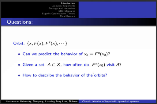 连增教授报告以微分方程实际应用背景开始,深入浅出,主要讲解了双曲动力系统混沌行为的相关理论。重点介绍了动力系统中围绕轨道三个基本问题所引出的李雅普诺夫指数、熵、马蹄、SRB测度等重要基本概念,然后展示了不变测度、Birkhoff遍历定理、乘积遍历理论等相关结果,接着从“正商能得到什么”这一具体问题出发,给出了符号动力系统与Smale马蹄的一一对应、非一致双曲马蹄的存在性、无穷维空间正熵可以蕴含马蹄等一系列结果,随后给出了SRB测度(物理测度)的背景、无穷维空间中SRB测度以及遍历极值的相关理论,最后对学术发展未来方向的工作进行了展望。连教授的报告展现了国际前沿的科研成果,报告会后师生对感兴趣的问题向连教授提问,连教授进行耐心细致解答。此次报告对开拓教师和同学们的科研视野,提升解决问题、发现问题的思路方法提供有益帮助,与会师生受益匪浅。