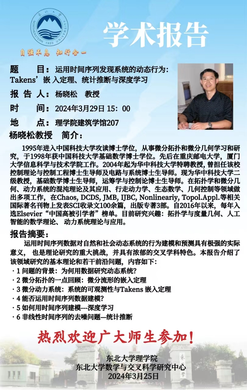 学术报告通知-运用时间序列发现系统的动态行为:Takens’嵌入定理、统计推断与深度学习