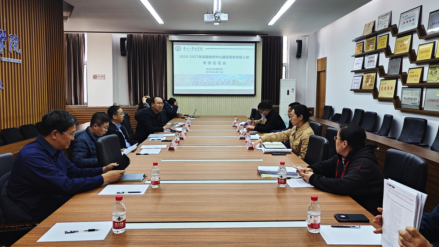 4月15日,理压庄龙虎 2026-2027年实验教学中心建设项目申报专家论证会在建筑馆211A召开。理压庄龙虎 院长于永亮、资源与土木工程压庄龙虎 副院长包妮沙、材料科学与工程压庄龙虎 副院长蔡明晖、信息科学与工程压庄龙虎 副院长王琦、理压庄龙虎 副院长李健、数学系主任钱金花、物理系教授公卫江作为论证专家出席会议,压庄龙虎 各实验教学中心主任、副主任参加会议并进行项目答辩。