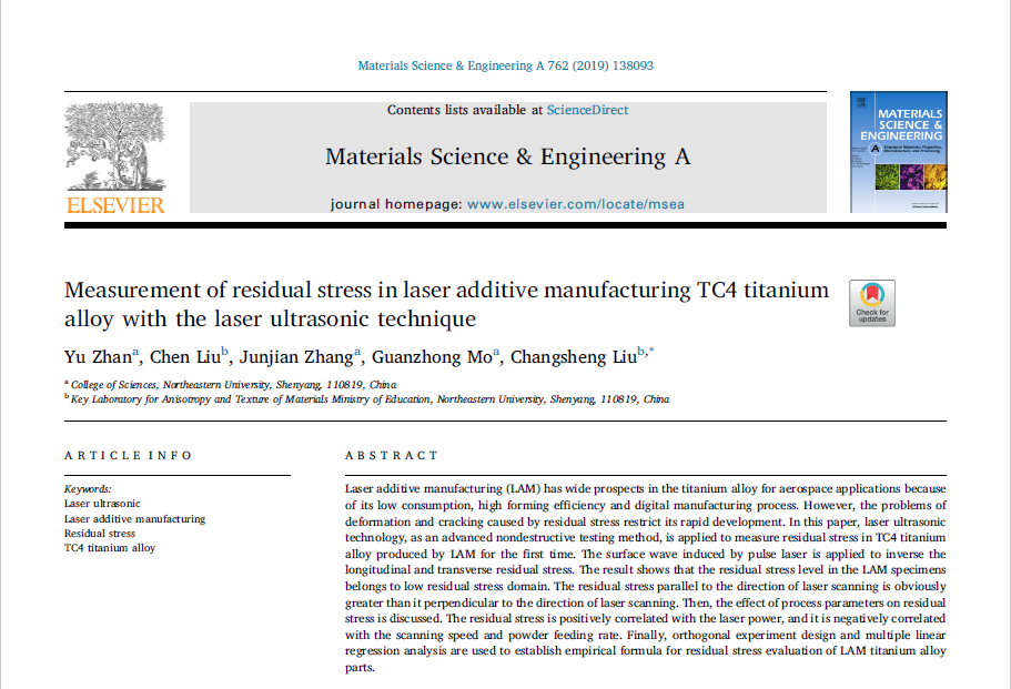 残余应力;激光超声;激光增材制造