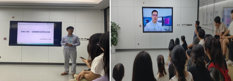 在辽宁材料实验室,工作人员详细介绍了辽宁材料实验室的建设理念和发展历程。随后,同学们在工作人员带领下参观了郭可信材料表征中心,并认识了各种先进实验仪器的工作原理以及相关使用方法。表征中心周杨韬老师关于显微镜的发明与发展报告引起了同学们的浓厚兴趣,使同学们对电子显微镜在材料领域的应用有了直观且深入的了解。