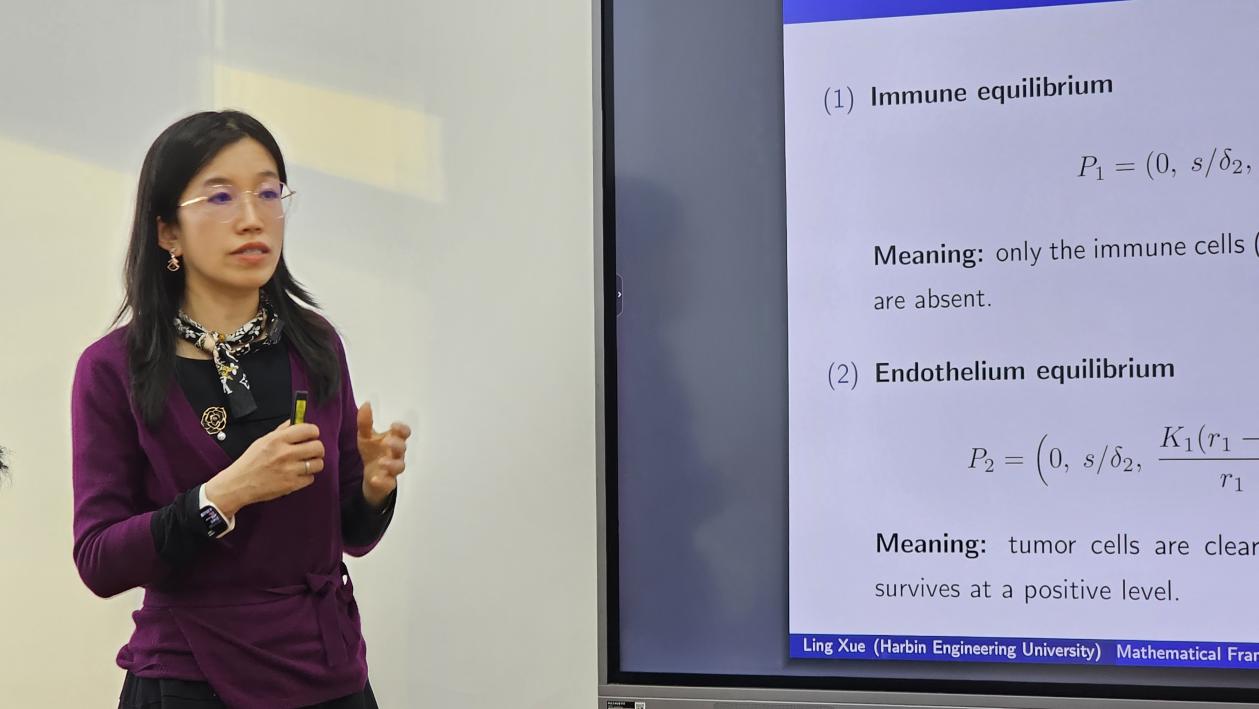 哈尔滨工程压庄龙虎 数学科学压庄龙虎 的薛玲教授以“Mathematical Frameworks for Optimizing Combination Cancer Therapies:From Anti-Angiogenesis to Immunotherapy”为题,分享了其团队构建的肿瘤联合治疗优化数学框架。该框架涵盖抗血管生成药物与化疗的联合应用、mRNA疫苗与抗CTLA-4抗体的协同治疗等方向,通过精准的数学建模与分析,为个性化多模式肿瘤治疗方案的设计提供了理论依据,展现了数学在临床转化中的重要价值。
