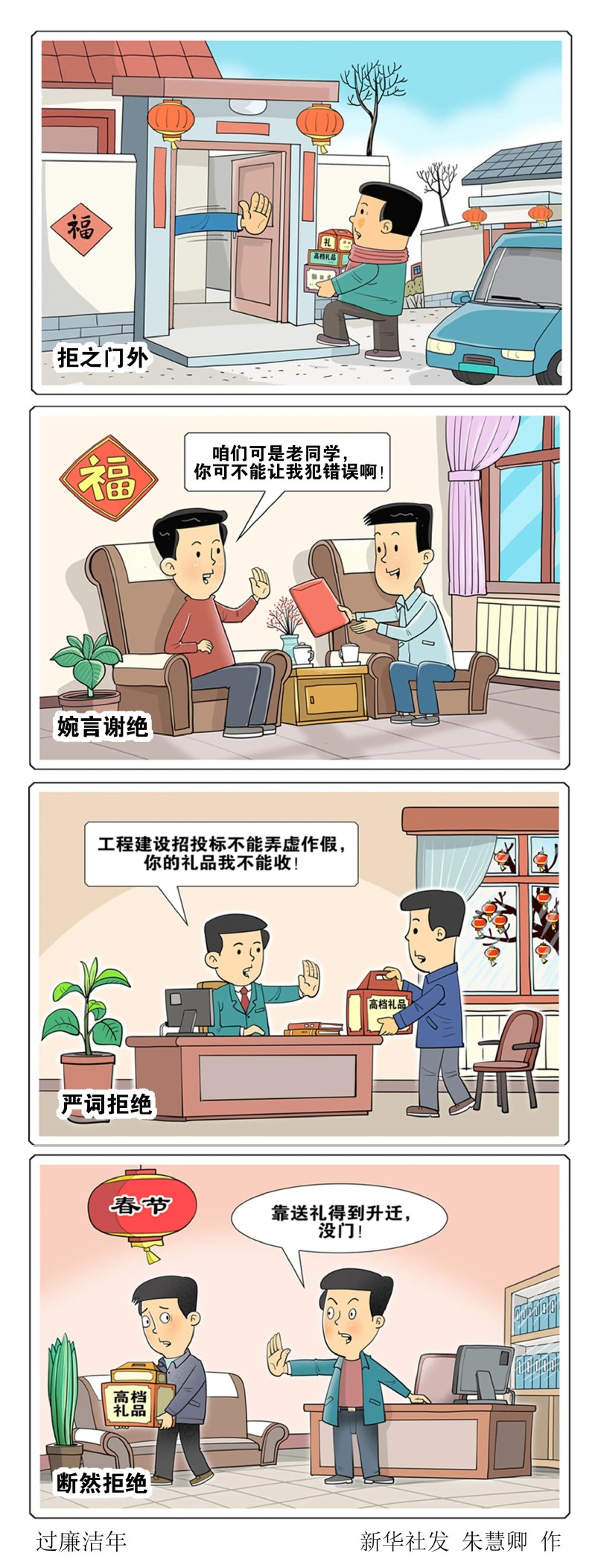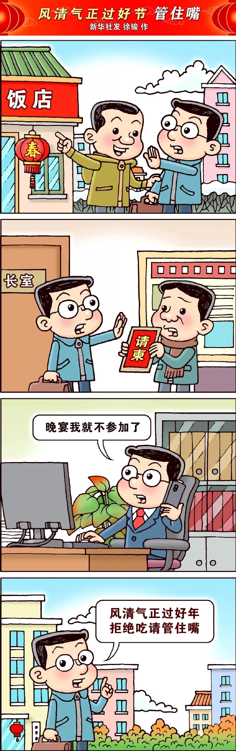 一月(第三周)把牢“年关”守“廉关”, 共筑清风正气年丨《过廉洁年》与《风清气正过好节》漫画两则