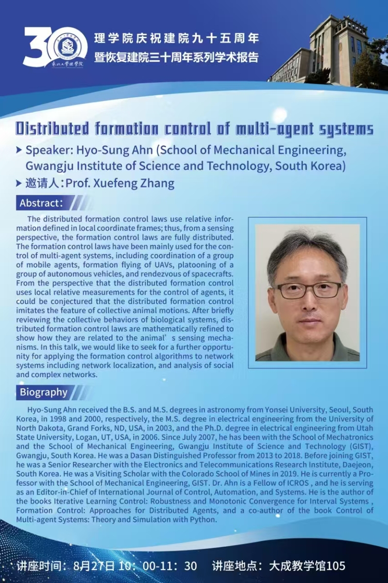 院庆学术活动之Hyo-Sung Ahn教授学术报告(数学)