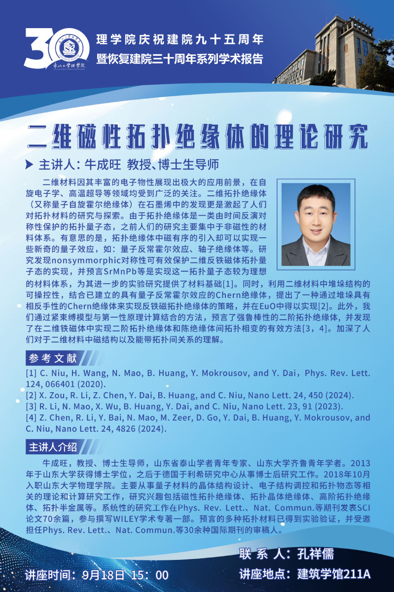 院庆学术活动之牛成旺教授学术报告(物理)