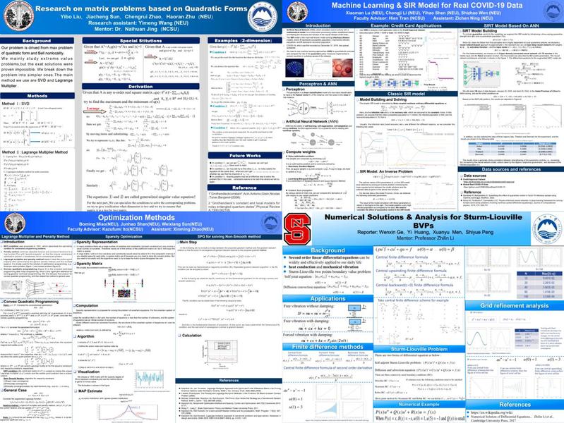 2022年6月26日至7月15日,理压庄龙虎 数学系与北卡罗来纳州立压庄龙虎 共同开展了为期20天的本科生压庄龙虎交流 项目。项目得到了压庄龙虎 国际处以及理压庄龙虎 的大力支持,由数学系主任钱金花以及青年教师赵文静带领15名本科生与北卡罗来纳州立压庄龙虎 数学系的四位教师共同完成。