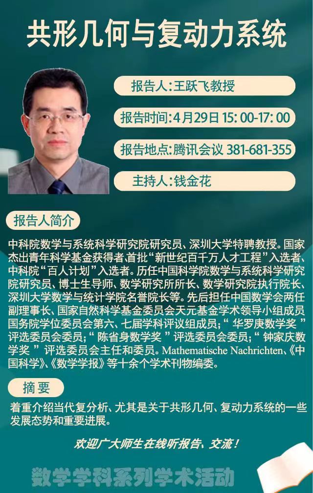 中科院数学与系统科学研究院:王跃飞研究员学术报告