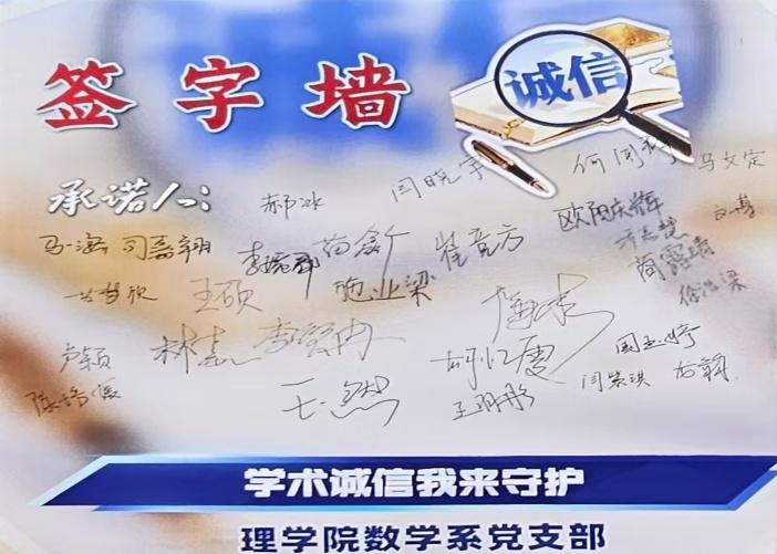 开幕式后,数学系硕士研究生开展学术诚信签名环节。现场“学术诚信墙”印刻“学术诚信我来守护”倡议,同学们有序签名,以郑重行动兑现诚信承诺,彰显青年科研人对学术道德的敬畏,为活动奠定严谨基调。